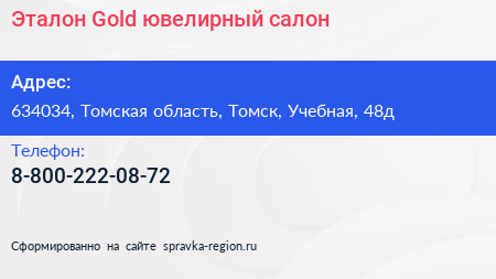 Эталон Gold, ювелирный салон по адресу 634034, Томская область, Томск, Учебная, 48д в дальнейшем Организация, размещена в следующих категориях: