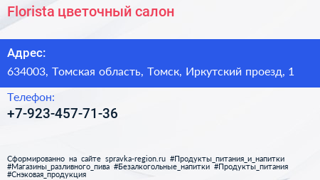 Florista, цветочный салон по адресу 634003, Томская область, Томск, Иркутский проезд, 1 в дальнейшем Организация, размещена в следующих категориях: