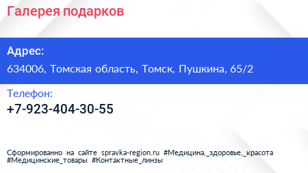 Галерея подарков по адресу 634006, Томская область, Томск, Пушкина, 65/2 в дальнейшем Организация, размещена в следующих категориях: