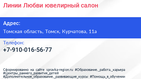 Линии Любви, ювелирный салон по адресу Томская область, Томск, Курчатова, 11а в дальнейшем Организация, размещена в следующих категориях: