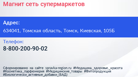 Магнит, сеть супермаркетов по адресу 634041, Томская область, Томск, Киевская, 105Б в дальнейшем Организация, размещена в следующих категориях: