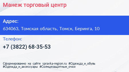 Манеж, торговый центр по адресу 634063, Томская область, Томск, Беринга, 10 в дальнейшем Организация, размещена в следующих категориях: