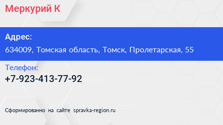 Меркурий-К по адресу 634009, Томская область, Томск, Пролетарская, 55 в дальнейшем Организация, размещена в следующих категориях:
