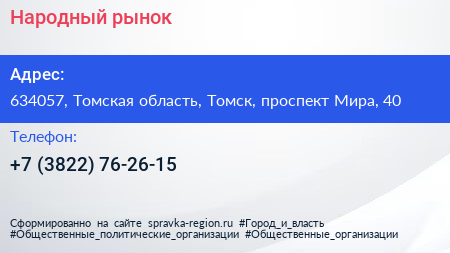 Народный рынок по адресу 634057, Томская область, Томск, проспект Мира, 40 в дальнейшем Организация, размещена в следующих категориях: