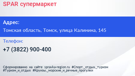 SPAR, супермаркет по адресу Томская область, Томск, улица Калинина, 145 в дальнейшем Организация, размещена в следующих категориях: