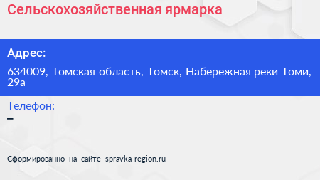 Сельскохозяйственная ярмарка по адресу 634009, Томская область, Томск, Набережная реки Томи, 29а в дальнейшем Организация, размещена в следующих категориях: