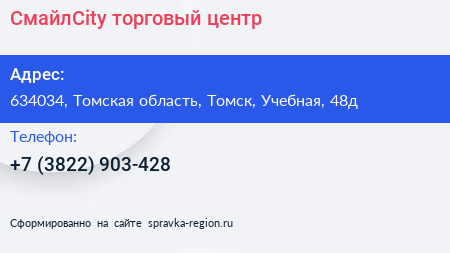 СмайлCity, торговый центр по адресу 634034, Томская область, Томск, Учебная, 48д в дальнейшем Организация, размещена в следующих категориях: