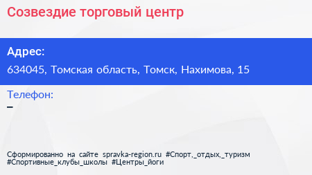 Созвездие, торговый центр по адресу 634045, Томская область, Томск, Нахимова, 15 в дальнейшем Организация, размещена в следующих категориях: