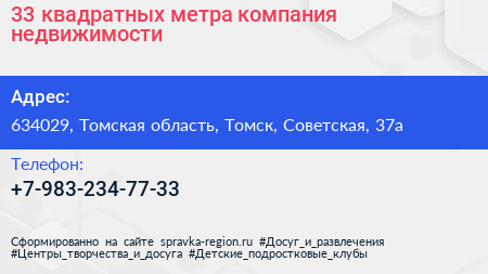 33 квадратных метра, компания недвижимости по адресу 634029, Томская область, Томск, Советская, 37а в дальнейшем Организация, размещена в следующих категориях: