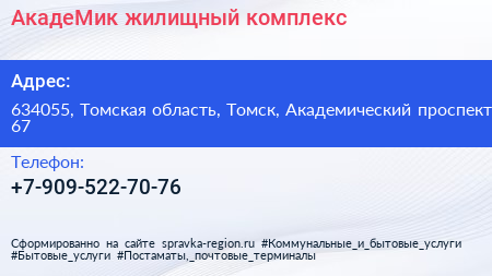 АкадеМик, жилищный комплекс по адресу 634055, Томская область, Томск, Академический проспект, 67 в дальнейшем Организация, размещена в следующих категориях: