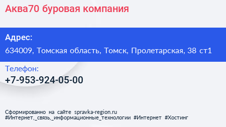 Аква70, буровая компания по адресу 634009, Томская область, Томск, Пролетарская, 38 ст1 в дальнейшем Организация, размещена в следующих категориях: