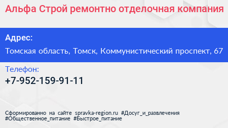 Альфа-Строй, ремонтно-отделочная компания по адресу Томская область, Томск, Коммунистический проспект, 67 в дальнейшем Организация, размещена в следующих категориях: