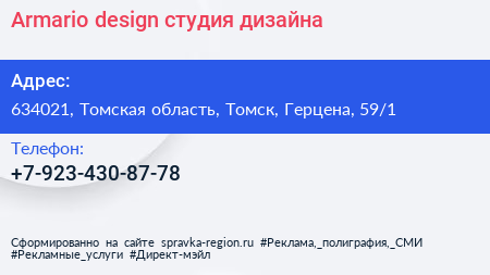 Armario.design, студия дизайна по адресу 634021, Томская область, Томск, Герцена, 59/1 в дальнейшем Организация, размещена в следующих категориях: