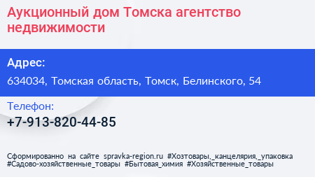 Аукционный дом Томска, агентство недвижимости по адресу 634034, Томская область, Томск, Белинского, 54 в дальнейшем Организация, размещена в следующих категориях: