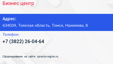 Бизнес-центр по адресу 634034, Томская область, Томск, Нахимова, 8 в дальнейшем Организация, размещена в следующих категориях: