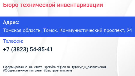 Бюро технической инвентаризации по адресу Томская область, Томск, Коммунистический проспект, 94 в дальнейшем Организация, размещена в следующих категориях: