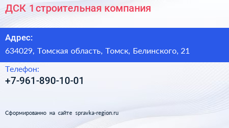 ДСК № 1, строительная компания по адресу 634029, Томская область, Томск, Белинского, 21 в дальнейшем Организация, размещена в следующих категориях: