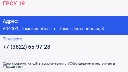 ГРСУ-19 по адресу 634003, Томская область, Томск, Больничная, 8 в дальнейшем Организация, размещена в следующих категориях:
