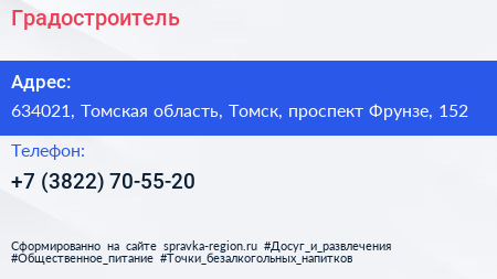 Градостроитель по адресу 634021, Томская область, Томск, проспект Фрунзе, 152 в дальнейшем Организация, размещена в следующих категориях: