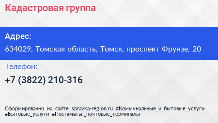 Кадастровая группа по адресу 634029, Томская область, Томск, проспект Фрунзе, 20 в дальнейшем Организация, размещена в следующих категориях: