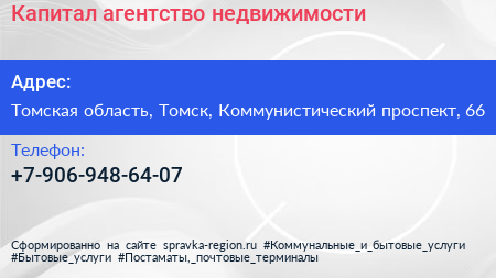 Капитал, агентство недвижимости по адресу Томская область, Томск, Коммунистический проспект, 66 в дальнейшем Организация, размещена в следующих категориях: