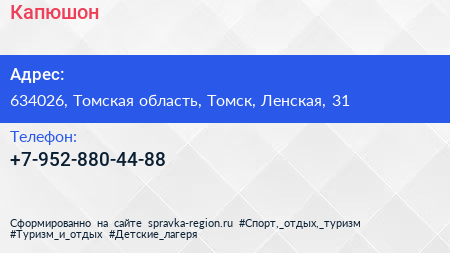 Капюшон по адресу 634026, Томская область, Томск, Ленская, 31 в дальнейшем Организация, размещена в следующих категориях:
