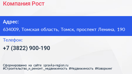 Компания Рост по адресу 634009, Томская область, Томск, проспект Ленина, 190 в дальнейшем Организация, размещена в следующих категориях: