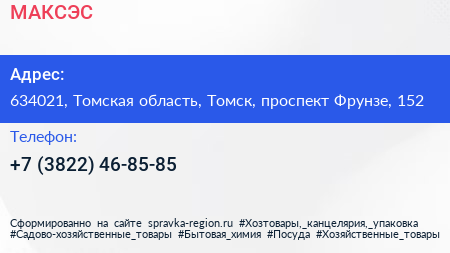 МАКСЭС по адресу 634021, Томская область, Томск, проспект Фрунзе, 152 в дальнейшем Организация, размещена в следующих категориях: