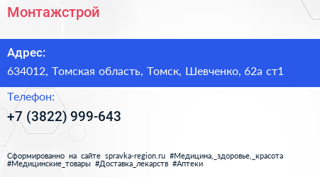 Монтажстрой по адресу 634012, Томская область, Томск, Шевченко, 62а ст1 в дальнейшем Организация, размещена в следующих категориях: