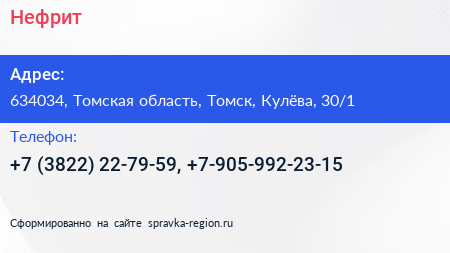 Нефрит по адресу 634034, Томская область, Томск, Кулёва, 30/1 в дальнейшем Организация, размещена в следующих категориях: