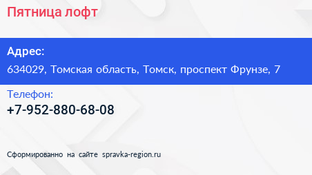 Пятница, лофт по адресу 634029, Томская область, Томск, проспект Фрунзе, 7 в дальнейшем Организация, размещена в следующих категориях: