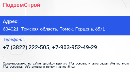 ПодземСтрой по адресу 634021, Томская область, Томск, Герцена, 65/1 в дальнейшем Организация, размещена в следующих категориях: