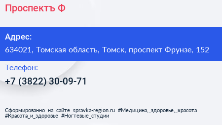 Проспектъ-Ф по адресу 634021, Томская область, Томск, проспект Фрунзе, 152 в дальнейшем Организация, размещена в следующих категориях: