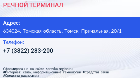 РЕЧНОЙ ТЕРМИНАЛ по адресу 634024, Томская область, Томск, Причальная, 20/1 в дальнейшем Организация, размещена в следующих категориях:
