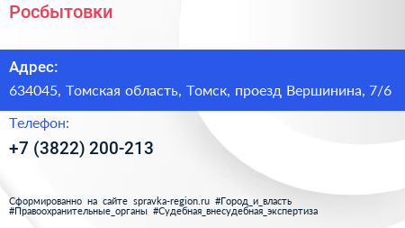 Росбытовки по адресу 634045, Томская область, Томск, проезд Вершинина, 7/6 в дальнейшем Организация, размещена в следующих категориях: