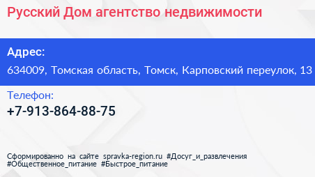 Русский Дом, агентство недвижимости по адресу 634009, Томская область, Томск, Карповский переулок, 13 в дальнейшем Организация, размещена в следующих категориях: