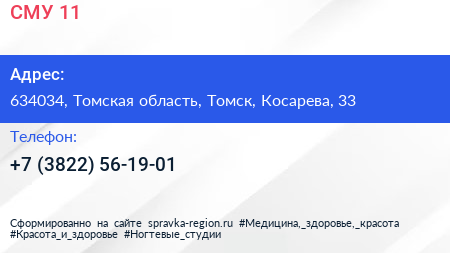 СМУ-11 по адресу 634034, Томская область, Томск, Косарева, 33 в дальнейшем Организация, размещена в следующих категориях: