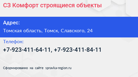 СЗ Комфорт, строящиеся объекты по адресу Томская область, Томск, Славского, 24 в дальнейшем Организация, размещена в следующих категориях: