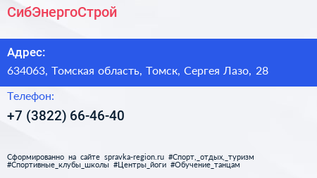 СибЭнергоСтрой по адресу 634063, Томская область, Томск, Сергея Лазо, 28 в дальнейшем Организация, размещена в следующих категориях:
