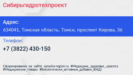 Сибирьгидротехпроект по адресу 634041, Томская область, Томск, проспект Кирова, 36 в дальнейшем Организация, размещена в следующих категориях:
