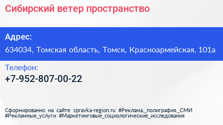 Сибирский ветер, пространство по адресу 634034, Томская область, Томск, Красноармейская, 101а в дальнейшем Организация, размещена в следующих категориях: