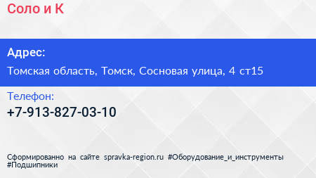 Соло и К по адресу Томская область, Томск, Сосновая улица, 4 ст15 в дальнейшем Организация, размещена в следующих категориях: