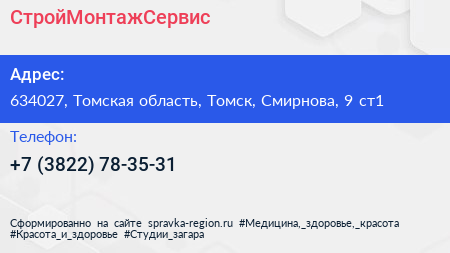 СтройМонтажСервис по адресу 634027, Томская область, Томск, Смирнова, 9 ст1 в дальнейшем Организация, размещена в следующих категориях: