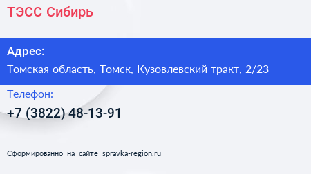 ТЭСС Сибирь по адресу Томская область, Томск, Кузовлевский тракт, 2/23 в дальнейшем Организация, размещена в следующих категориях: