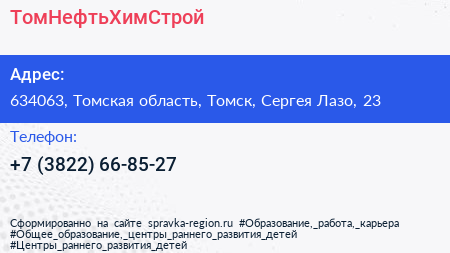 ТомНефтьХимСтрой по адресу 634063, Томская область, Томск, Сергея Лазо, 23 в дальнейшем Организация, размещена в следующих категориях: