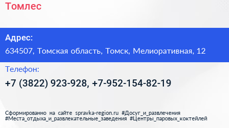Томлес по адресу 634507, Томская область, Томск, Мелиоративная, 12 в дальнейшем Организация, размещена в следующих категориях: