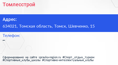 Томлесстрой по адресу 634021, Томская область, Томск, Шевченко, 15 в дальнейшем Организация, размещена в следующих категориях: