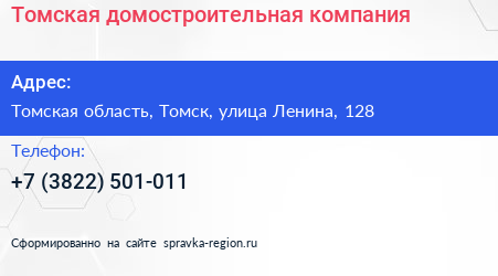 Томская домостроительная компания по адресу Томская область, Томск, улица Ленина, 128 в дальнейшем Организация, размещена в следующих категориях:
