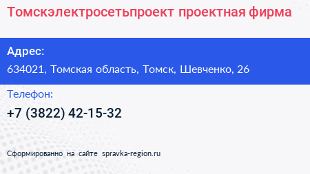 Томскэлектросетьпроект, проектная фирма по адресу 634021, Томская область, Томск, Шевченко, 26 в дальнейшем Организация, размещена в следующих категориях: