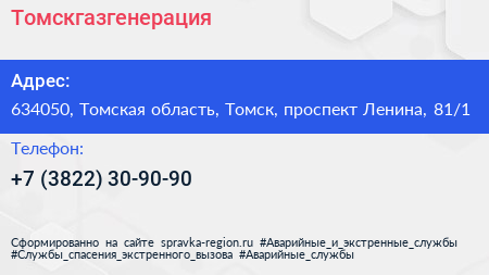 Томскгазгенерация по адресу 634050, Томская область, Томск, проспект Ленина, 81/1 в дальнейшем Организация, размещена в следующих категориях: